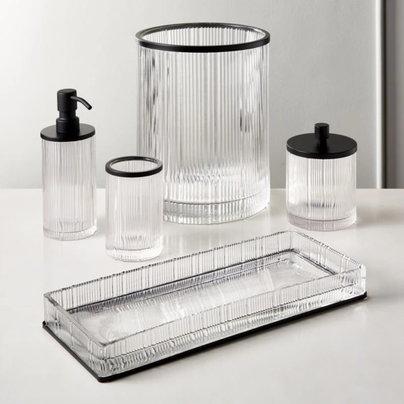Modern ribbed glass goes round on its corners and pairs with matte black for an edgy/dressy mix. CB2 exclusive.