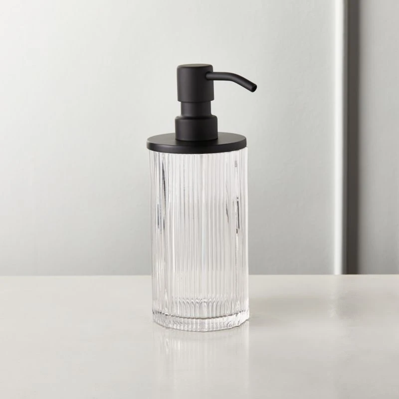 Athena Black Ribbed Glass Soap Pump 2.75″Wx2.75″Dx8″H