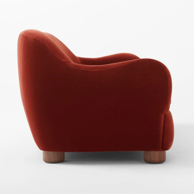 Bacio Merlot Curved Velvet Sofa With Walnut Legs