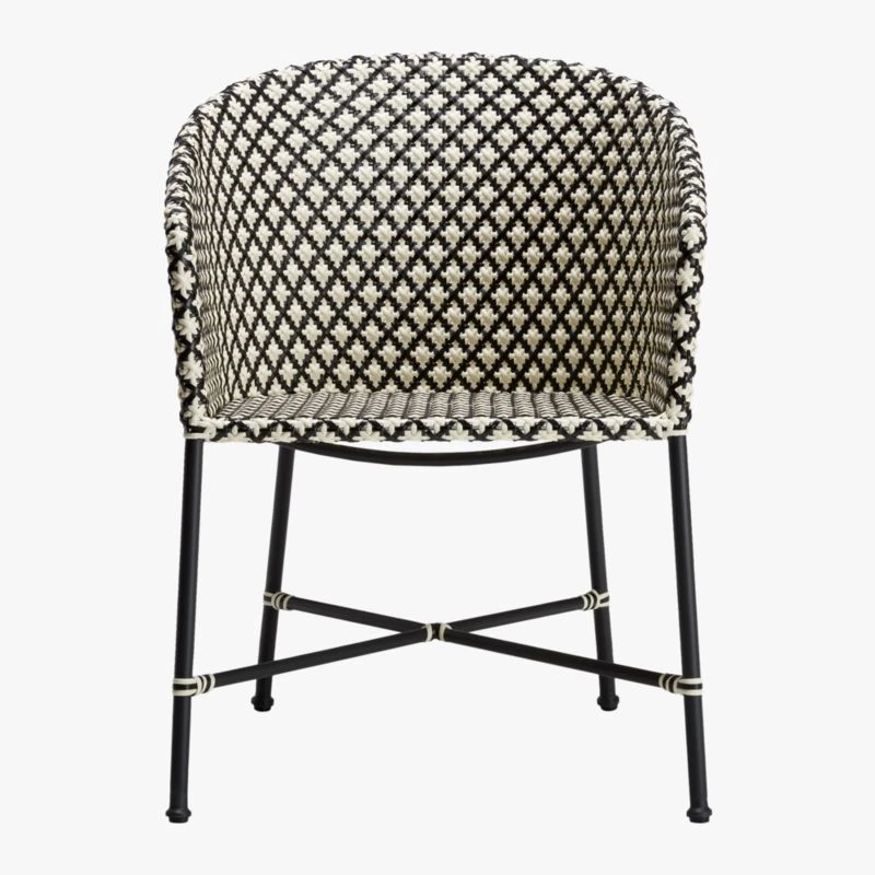 All-weather wicker hand woven into a modern diamond pattern in elegant black and white. Designed by Mermelada Estudio to give personality and energy to any space outdoors or in. Solid aluminum frame is hand-welded into a soft curve that’s both sculptural and comfortable. Learn about Mermelada Estudio on our blog.