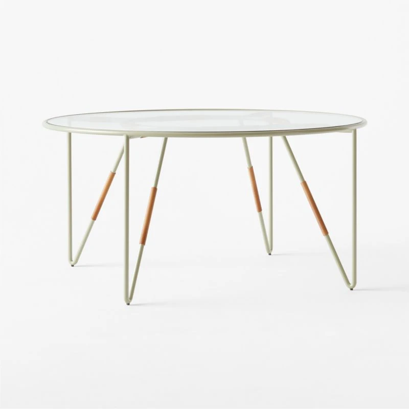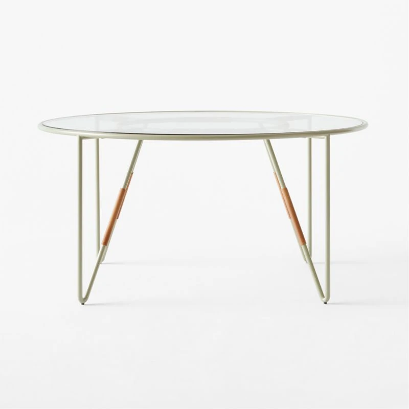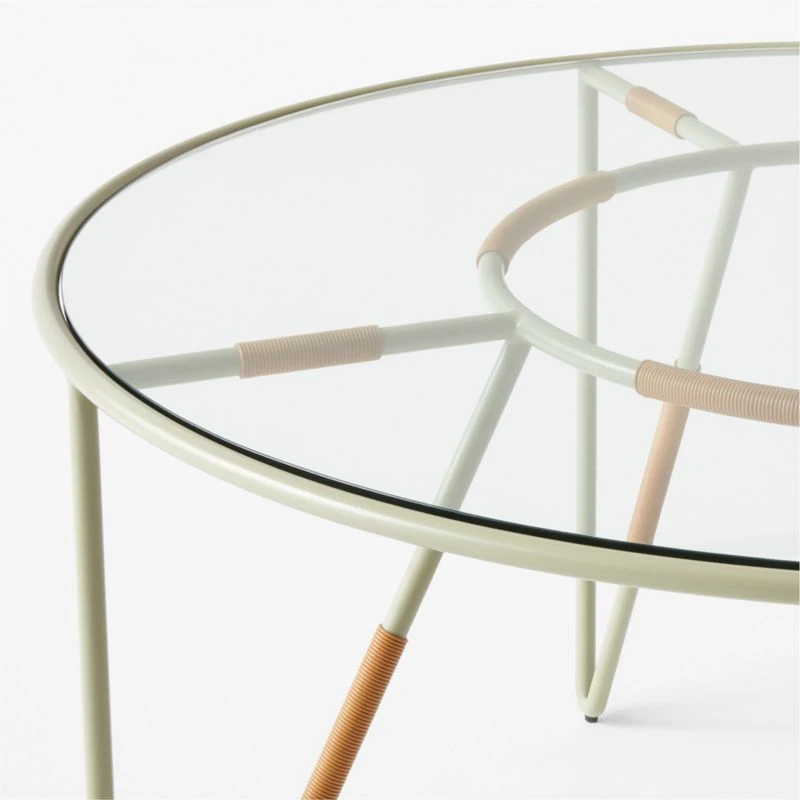 Colombe Round Green Metal Outdoor Dining Table With Glass Top