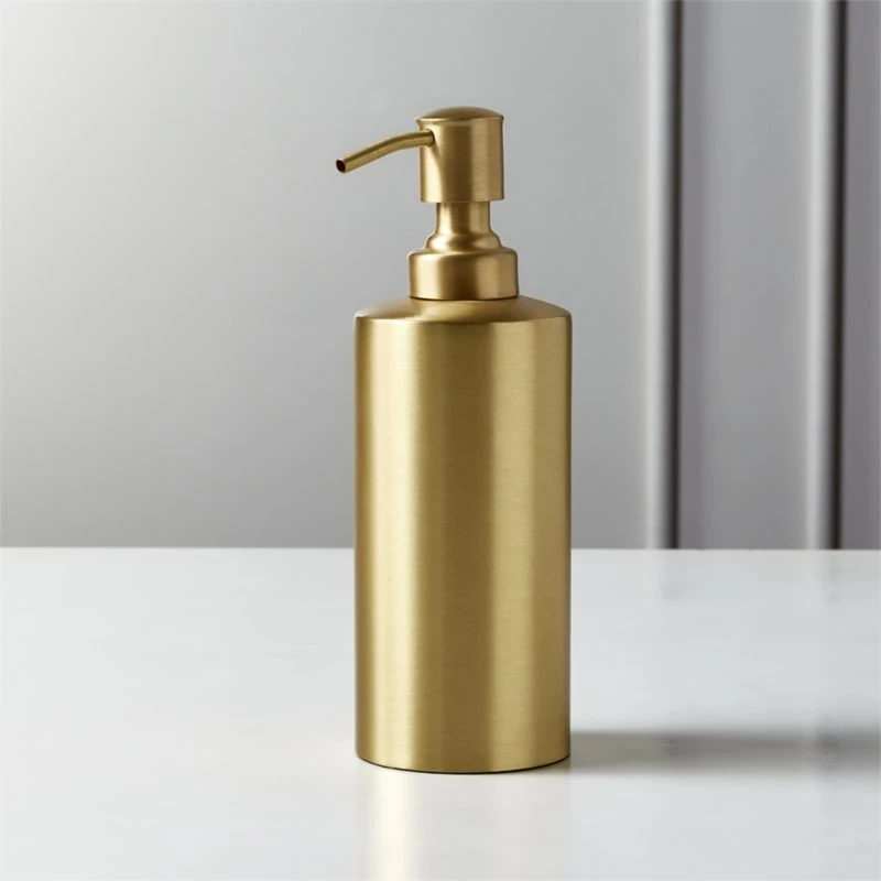 Hand made, real brass soap pump adds polish to your daily routine. Minimal design and brushed finish keeps it everyday. Coordinate with the full Elton Brushed Brass bath collection for an elevated master bath vibe. CB2 exclusive.