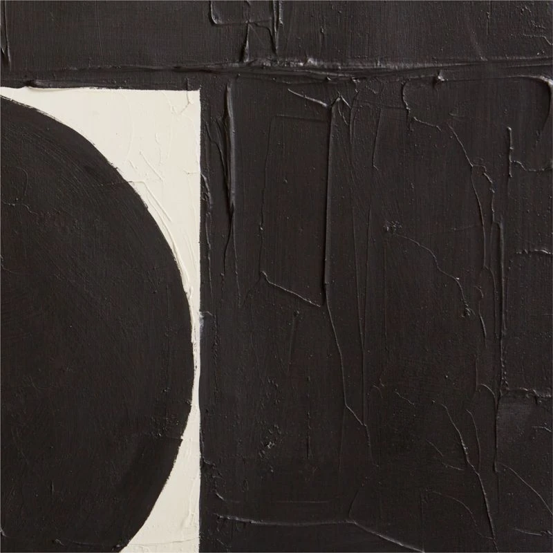 Inspired by the bold shapes of Bauhaus and midcentury designs, Stephane Fontaine’s “Function” series juxtaposes a stark palette of black and white with heavily textured layers of paint to create movement and a calm resting place for the eye. “I like the minimalist approach of how the circle meets the square in these art movements. I modernized this by placing my designs directly onto textured canvases,” explains the artist. Reproduced here to emulate the artist’s original techniques. Hangs in two orientations.
