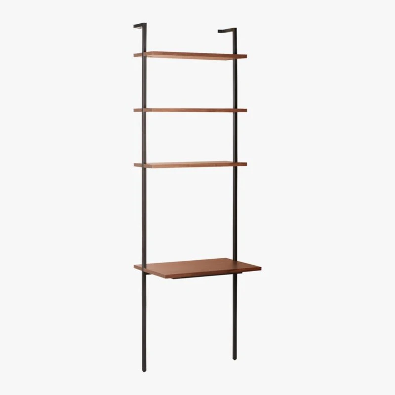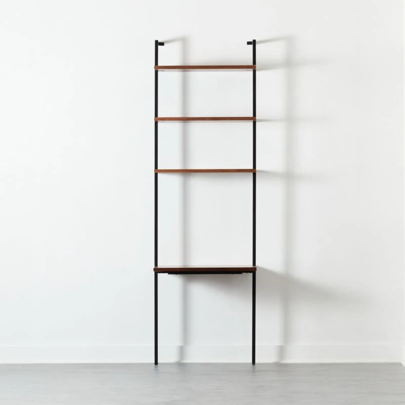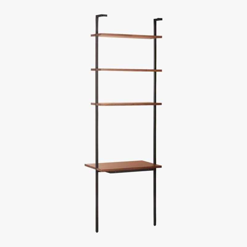 Helix Walnut Wood Wall Mount Desk With Shelves 96”