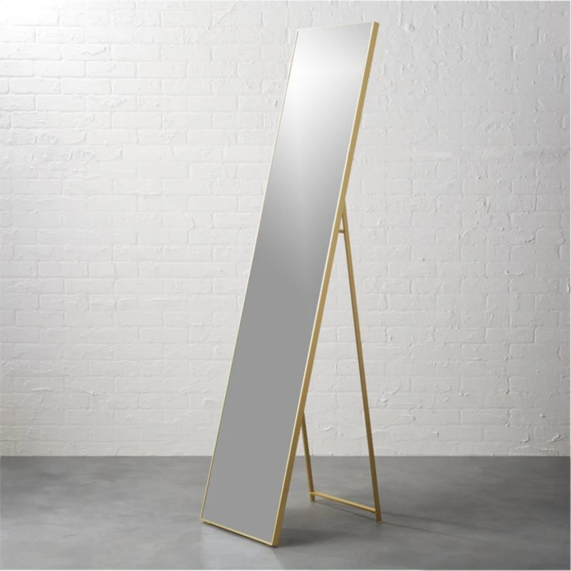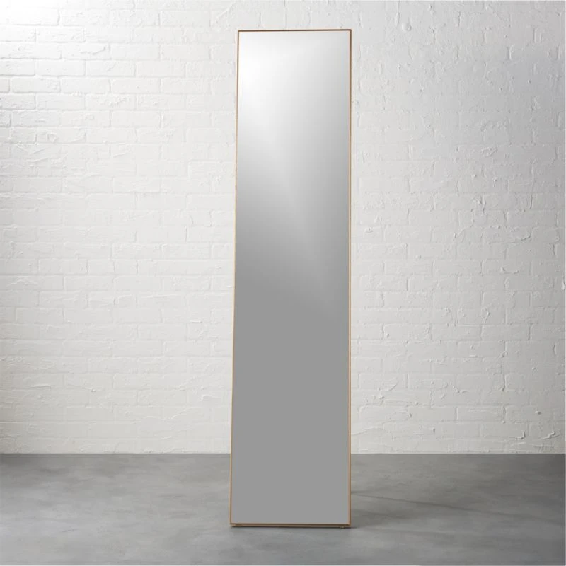 Mirror image without bounds framed thin, trim and exact in pure extruded aluminum with a brass plated finish. Resists corrosion so it’s perfect in the bath.