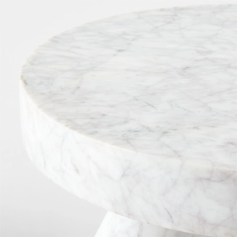 Jaxx White Marble Side Table Short 16″ dia. x 14″H