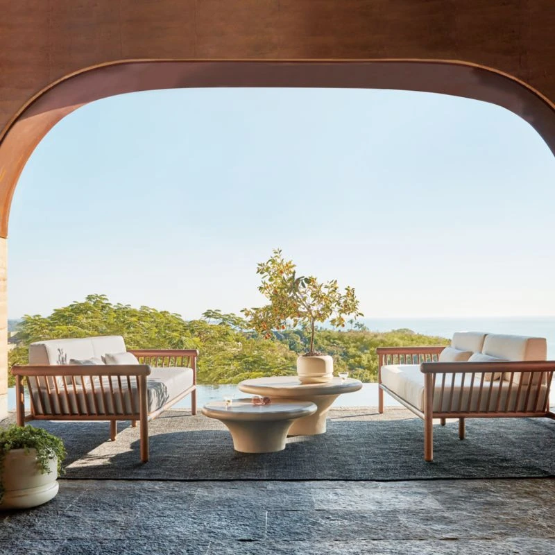 Outdoor tables by Balutto Associati have an organic, amorphous shape and subtly undulating texture. Molded of stain-resistant polyester resin in a satin dove finish, the tables nest together for a natural and graceful tableau. CB2 exclusive.