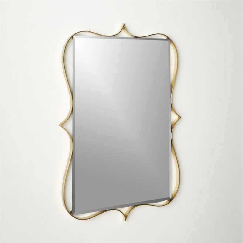 In designing this feminine, playful wall mirror, Sasha Adler found inspiration in French modernism. Mirror glass has a beveled edge and is framed by ribbons of unlacquered brass that will, over time, develop a patina that adds to the character of the piece. CB2 exclusive.