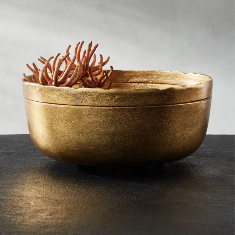 Inspired by handcrafted medieval jewelry, Kravitz Design’s serving bowl is crafted from lightweight cast aluminum with imperfect edging and an aged bronze finish. A simple silhouette with layers of nuance. CB2 exclusive.